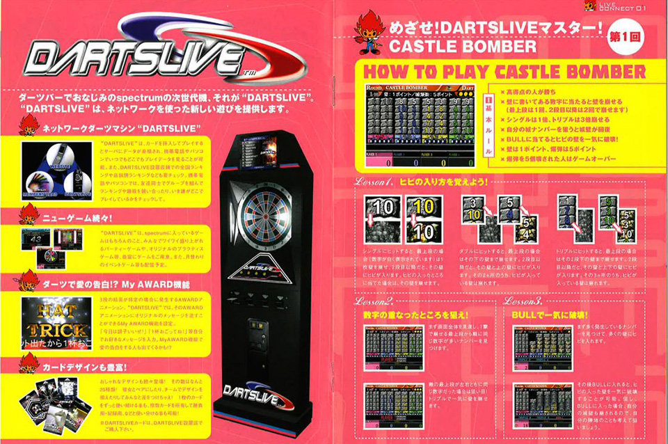 ダーツライブが発行していたフリーペーパー「LIVE CONNECT」のダーツライブマシンの説明