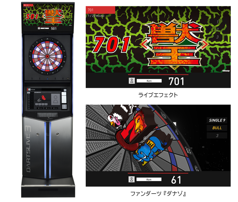 (*1)ネットワーク対応ダーツマシン「ダーツライブ3」「ダーツライブ2」、家庭用ダーツボード「ダーツライブホーム」のディスプレイ画面に設定できるゲーム壁紙コンテンツです。自分の好きなデザインのデジタルコンテンツを設定することで、ゲーム画面を個性的にアレンジすることが可能です。