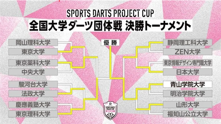 セガサミーグループの株式会社ダーツライブ(本社:東京都品川区、代表取締役 社長執行役員:阿部 東)は、大学対抗形式によるダーツ大会「スポーツダーツプロジェクトカップ2026 全国大学ダーツ団体戦」を2026年3月21日(土)に開催、青山学院大学が初代優勝を決めました。