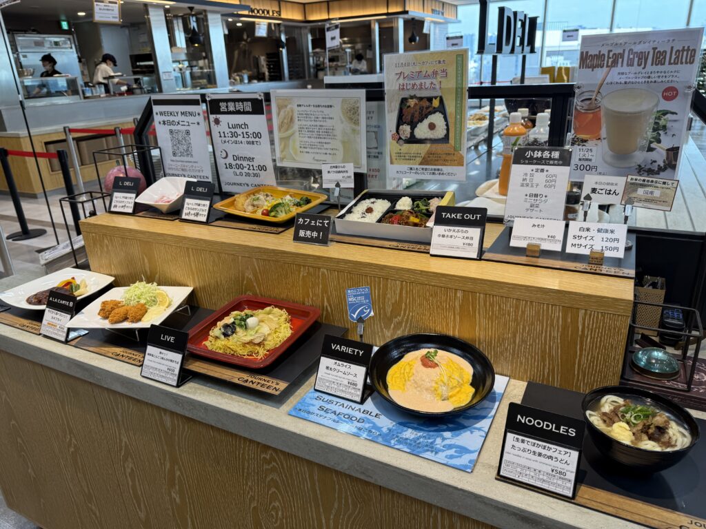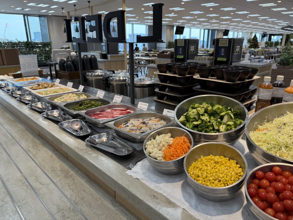 同じく9Fにはグループ会社の共有スペースもあります。社員食堂は、ビュッフェやアラカルトなどメニューが充実🤤