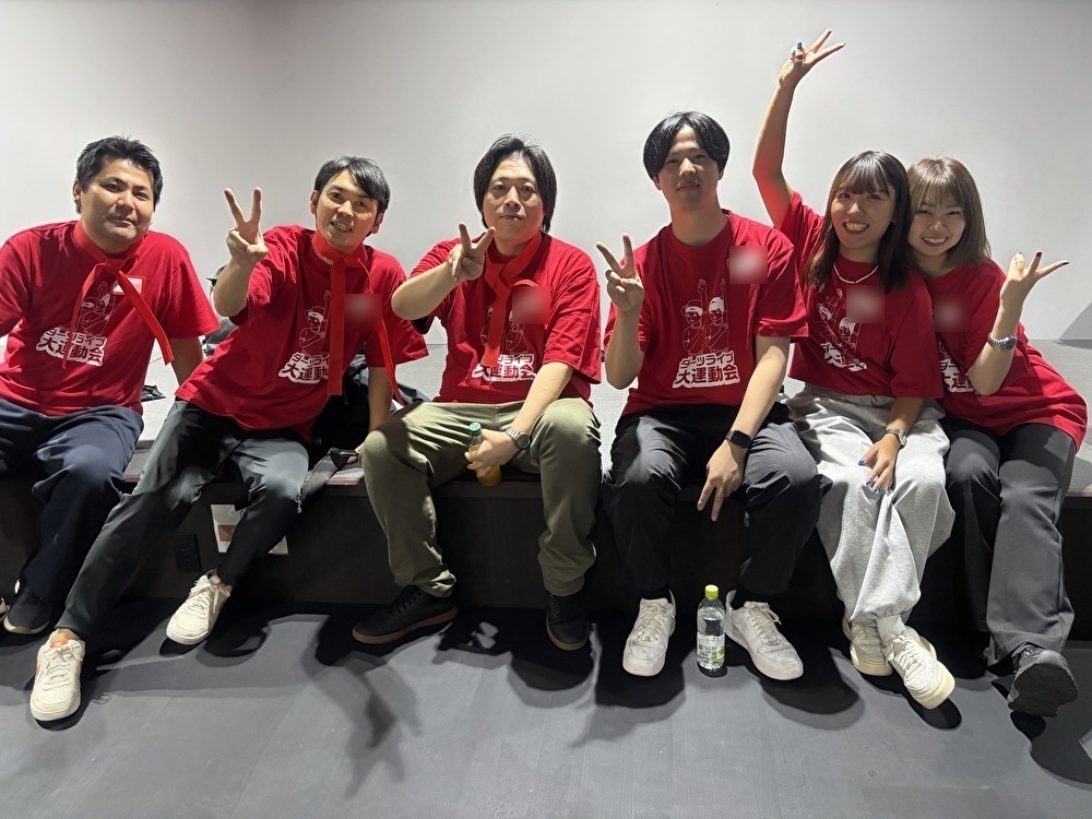 会場に到着した社員たちは、チームカラーのTシャツに着替えてやる気十分🔥Tシャツも、この日のためだけに作っちゃいました!